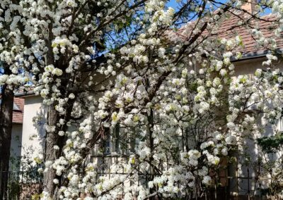 A 115 m²-es lakás mellett egy különálló, 50 m²-es leválasztott házrész és egy 21,6 m²-es garázs, szerelőaknával, is tartozik az ingatlanhoz. Az épület 100 éves, többször felújított, jó, lakható állapotban van. A házban 3 nagy, egymásból nyíló szoba, különálló szoba, két előtér, nagyobb konyha, WC, hosszúkás fürdőszoba, valamint egy 11 m²-es zárt terasz is található.