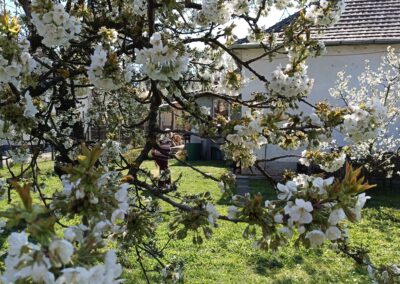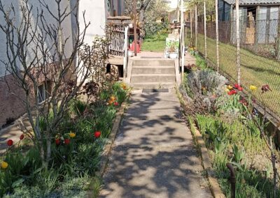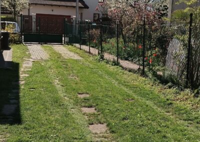 A ház mellet, a telken belül van egy különálló garázs, 5,4 X 4 m = 21,6 m2/, téglából építve, egy oda vezető kibetonozott úttal.